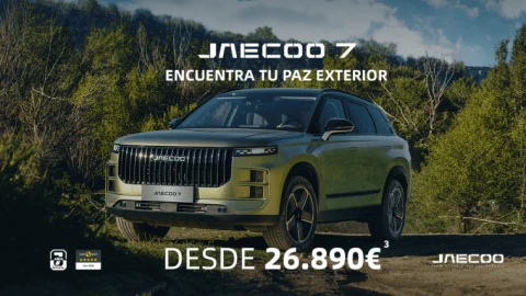 (3) *PVP recomendado en Península y Baleares para Jaecoo 7 Select MY25 4×2 1.6TDGI 108kW (145cv) 7DCT (IVA, impuestos de matriculación, transporte, descuento de marca y concesionario, descuento por permuta, descuento por financiar con Santander Consumer Finance S.A., incluidos en la oferta). Sistema de amortización Francés. Oferta válida para clientes particulares que financien a través de Santander Consumer Finance, S.A. sujeta a estudio y aprobación según condiciones actuales con un capital mínimo de 18.000€, y con una duración y permanencia mínima de la financiación de 36 meses. Campaña incompatible con otras ofertas financieras. Oferta válida hasta el 31/12/2025, y sujeta a disponibilidad de stock. Regalo de 1º mantenimiento en Red Oficial de Servicios Posventa Jaecoo (incluye las operaciones de inspección, sustitución de piezas y reposición de fluidos conforme a las operaciones estandáres establecidas en el Plan de Servicios de Mantenimiento, en un plazo máximo de 1 año o 15.000 km (lo que ocurra primero) y 1º año de seguro a todo riesgo con franquicia de 300€ (franquicia reducida de 150€ acudiendo a nuestra Red Oficial de Servicios Posventa Jaecoo) a través de Mutua Madrileña. Garantía comercial de 7 años o 150.000 km (lo que ocurra primero), según Manual de Garantías. No incluye gastos de matriculación y pre-entrega. Consumo medio combinado 7.0L-8.0L/100km (WLTP). Emisiones de CO₂ combinadas: 159-182g/km (WLTP). Para más información consulta en tu Concesionario Oficial JAECOO.